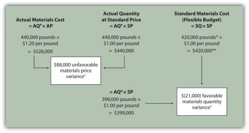 † $88,000 unfavorable materials cost variance = $528,000 – $440,000. Variance is unfavorable because the actual cost of $1.20 is college than the expected (budgeted) price of $1.